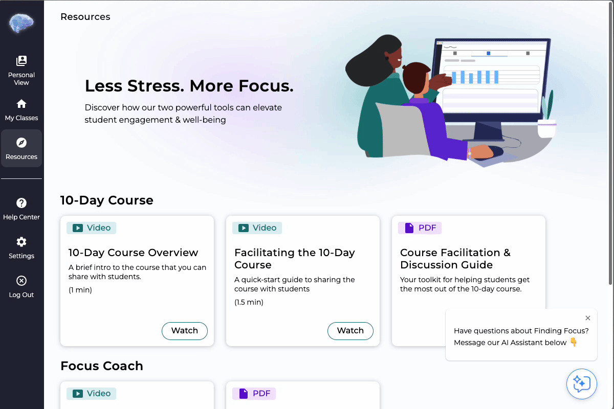 What is the connection between the 10-Day Course and the Focus Coach?
