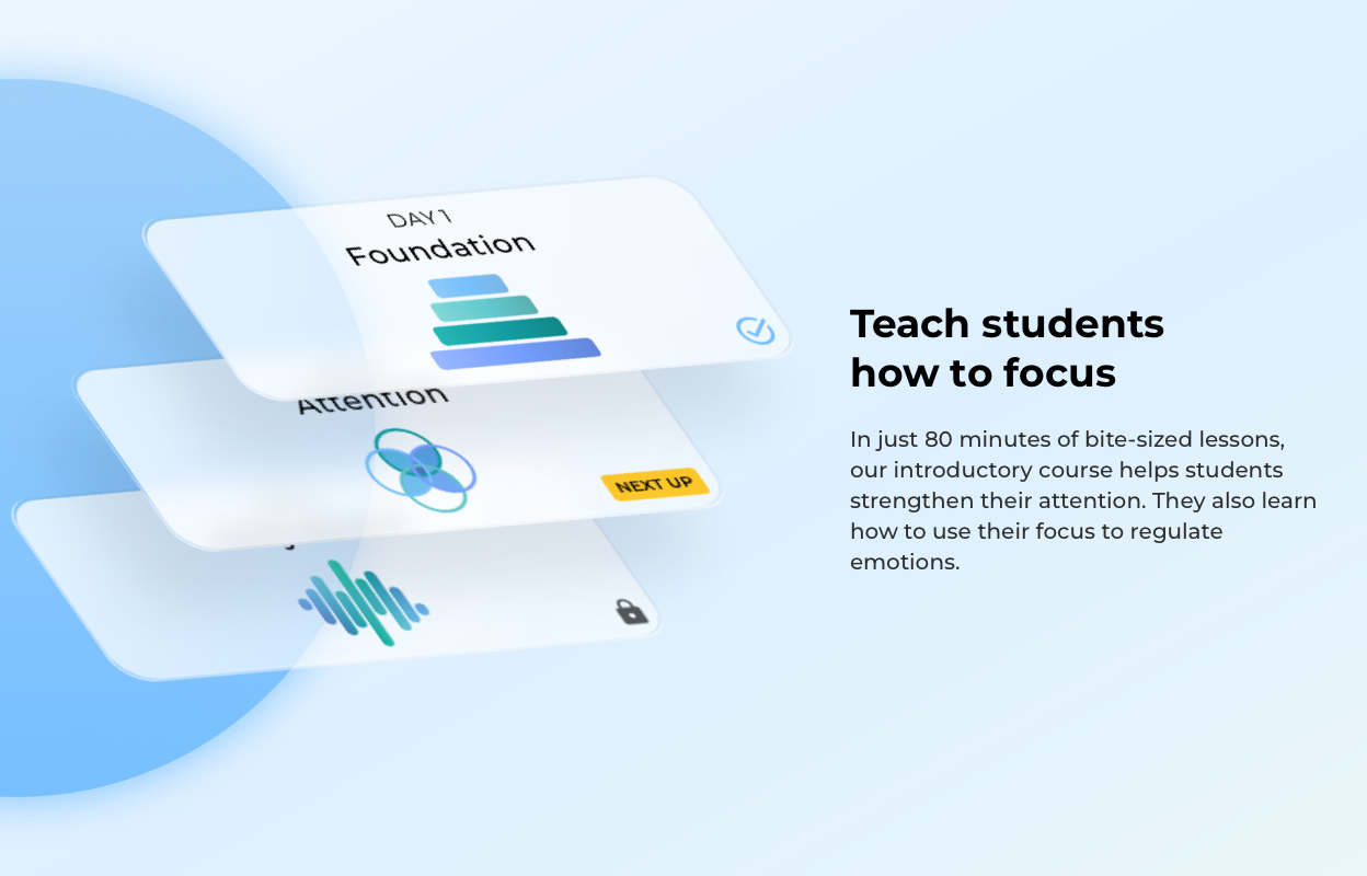 I used the hero section as an opportunity to frame Finding Focus around outcomes teachers care about, highlight the product's credibility, and put a clear sign-up path front and center. That way, teachers could quickly understand the value of the platform without having to piece it together themselves.