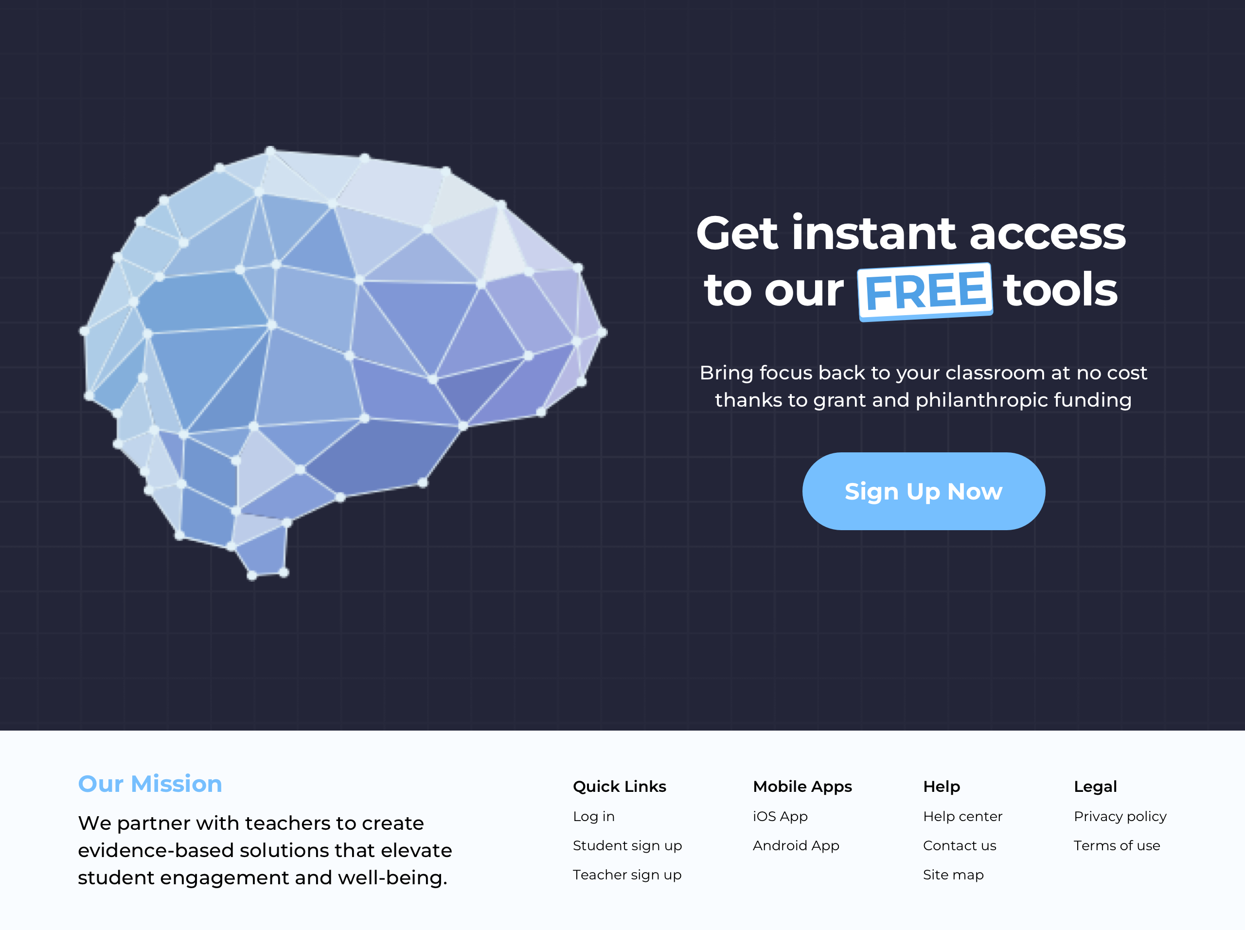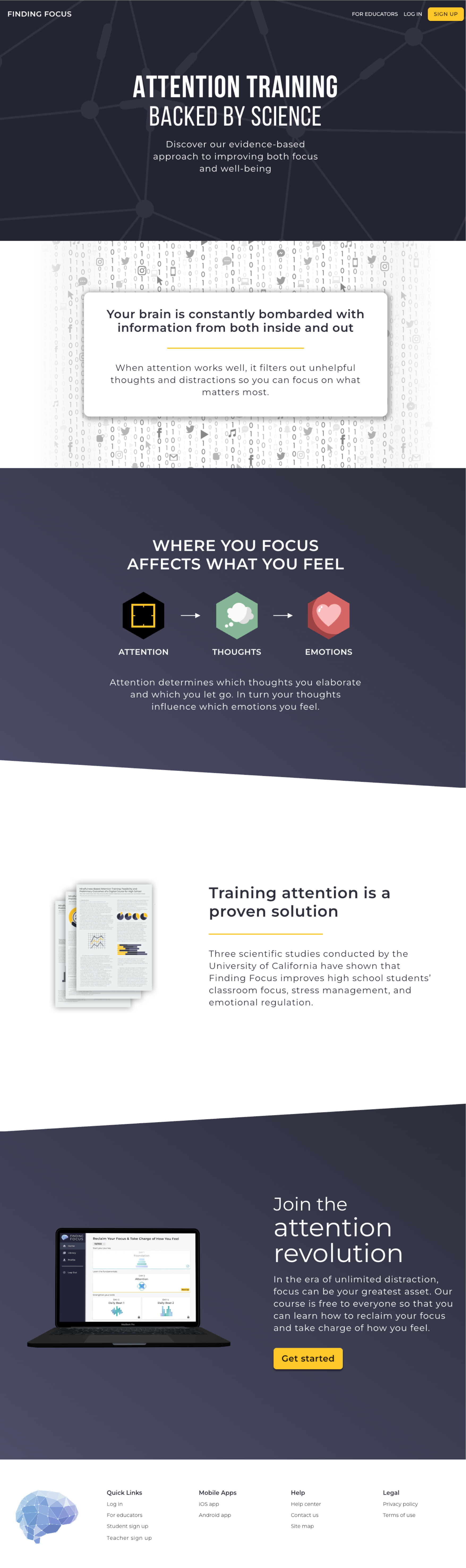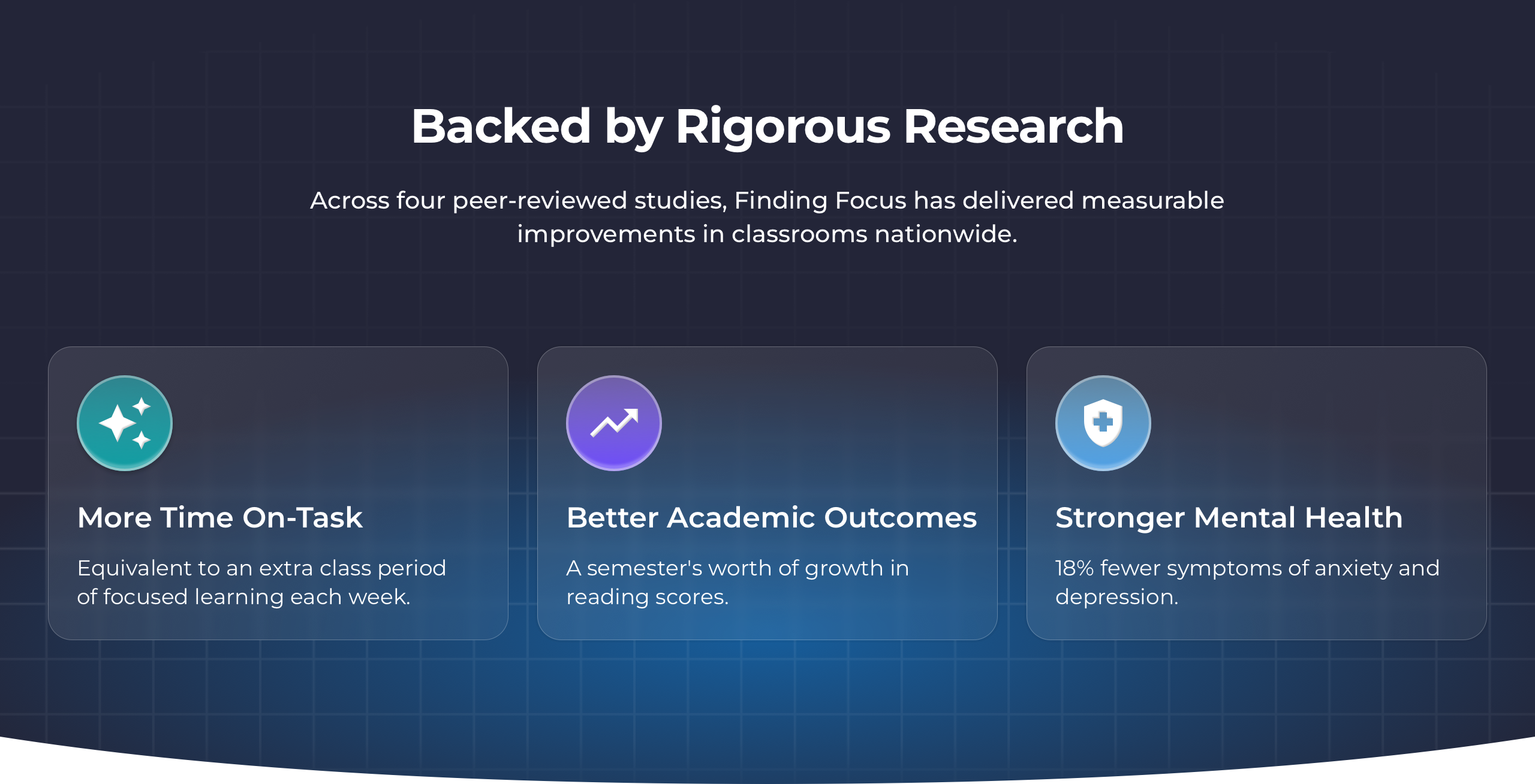Finding Focus is grounded in research, and we really wanted to highlight that. Creating a research section helped us surface our measured outcomes in a way that demonstrate our value and would be relevant to teachers.
