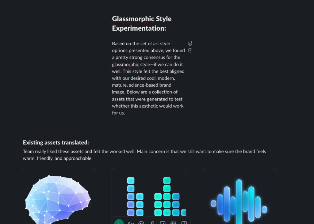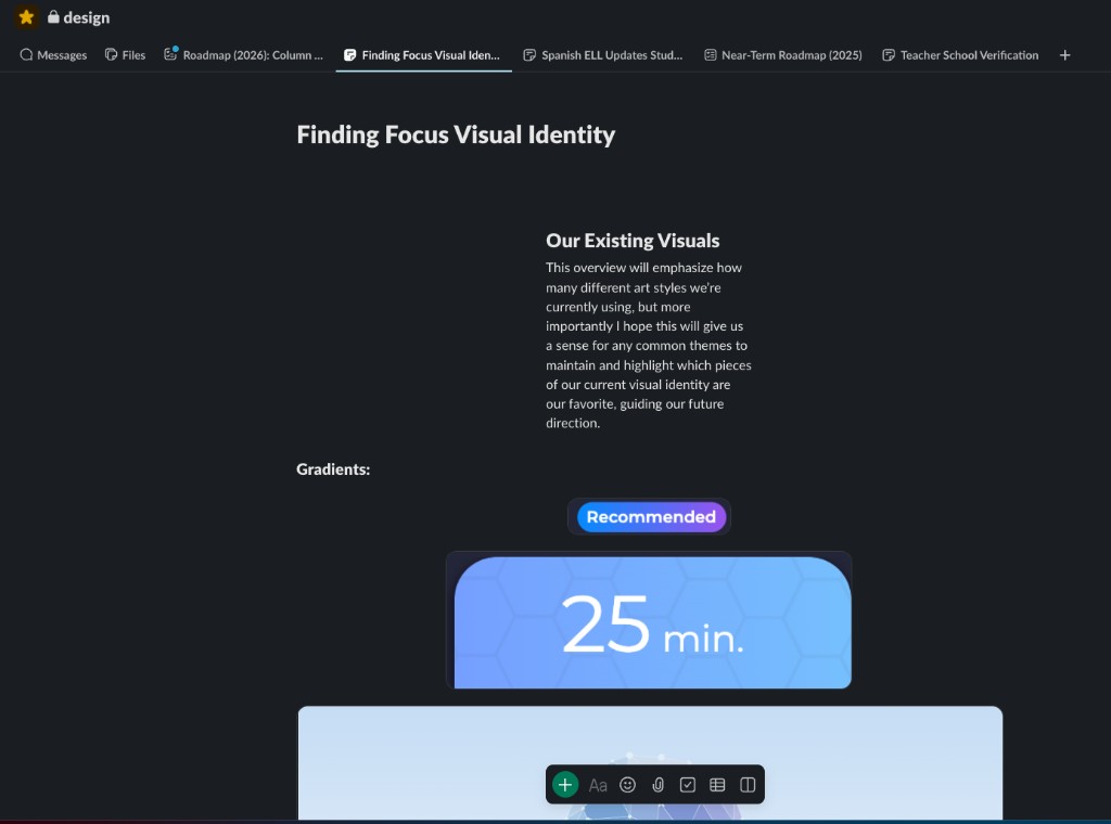 Slack Canvas created to go over our current visual identity